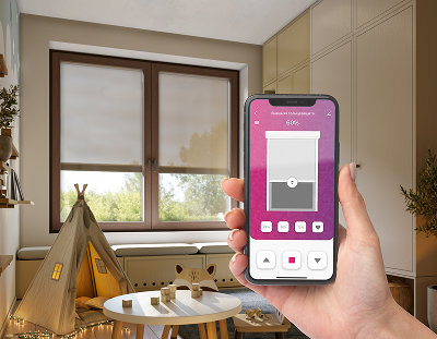 Управляйте внешней солнцезащитой с пульта и через приложение или настройте сценарий автоматического открытия‑закрытия с учетом погодных условий.