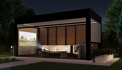 Превратите беседку или веранду в личный кинотеатр с любимыми фильмами. Полотно системы можно использовать как экран для проектора.